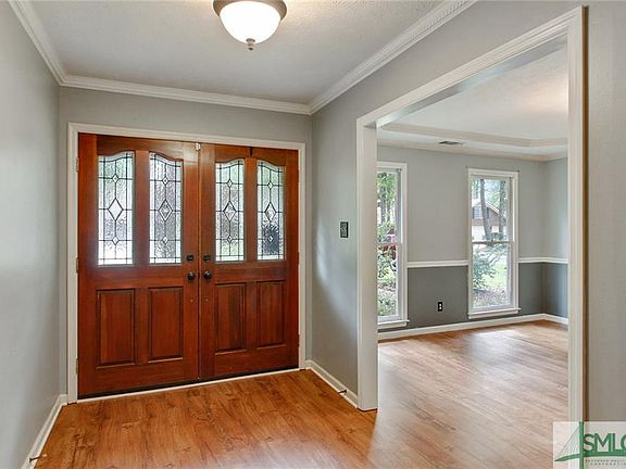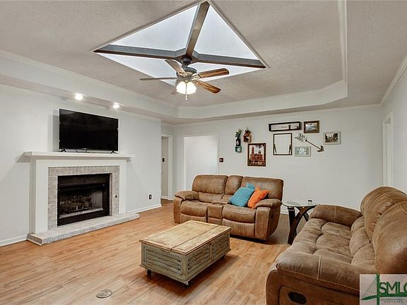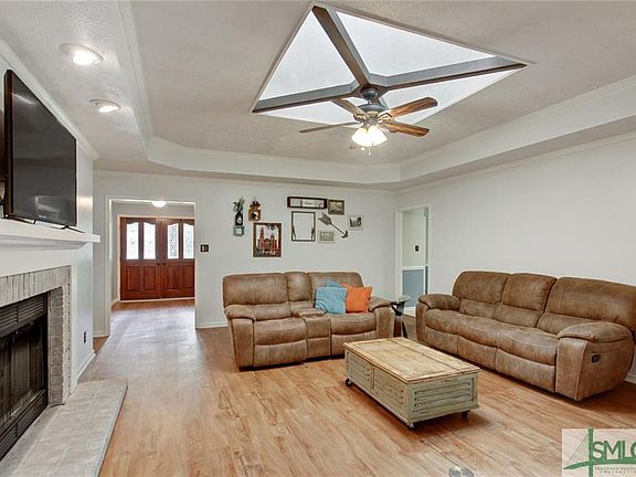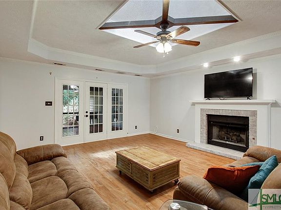 This home is nestled in the gated community of Forest Cove and is ready for you. This one story home of over 2400 sq ft has been recently updated with new floors and new master bath. As you walk into the foyer and look to the living room, notice the stunning ceiling feature with a skylight and a fan suspended from wooden beams that give this space a mid century modern feel! Notice the fireplace as a centerpiece and access to the sun-room. The large kitchen provides a breakfast area and room to make delicious treats with double ovens and room for more than one cook! There is a formal dining room to enjoy those treats as well! Additionally, near the kitchen is a half bath and the office. The master bedroom is a large, quiet retreat with a recently remodeled stunning bathroom that gives secondary access to the sun-room through French doors. Two more bedrooms share the second full bath with double vanities. This home is minutes from restaurants, shopping, hospitals, HAAF and Ft Stewart.