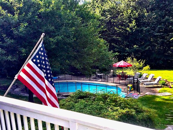 CALL Rose Ciardiello 203-314-6269 to see this lovely 5 bedroom colonial perfectly situated on a private 2 acre lot in The Woodlands, one of Guilford's most desirable subdivisions. Enjoy a modern, open floor plan with spacious, elegantly appointed rooms, and a light-filled gourmet kitchen. This home features hardwood floors, high ceilings, large transom windows, French doors, elegant moldings, and a cozy gas log fireplace in the family room. The master bedroom has hardwood flooring, ceiling fan, walk-in closet and a remodeled bathroom. A large laundry room is located on the second floor. Enjoy your privacy while swimming in a heated, in-ground pool, surrounded by lush landscaping, a lovely new bluestone patio and fencing around the perimeter of backyard. The Woodlands subdivision is uniquely convenient to everything in town, minutes from shops, restaurants, schools and major highway, yet hidden from traffic & bustle! You will love the peacefulness of this quiet cul-de-sac and all the amenities this home has to offer. Additional features includes a security system, central vac., Generac full house auto generator, new furnace and new hot water heater.