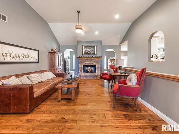 BEAUTIFUL 4bd 4ba 4 sided BRICK Ranch with walk-out sitting on 2.4 acres with timber and a creek. Absolutely AMAZING views. Sellers have extensively updated the floor plan allowing for a more open and modern design. Spacious primary bedroom suit. The other 3 bedrooms all have bathrooms connected to them. Double sided fireplace in family room into dining room. Gorgeous built in book case in Living room. Spacious kitchen with custom waterfall counter, pantry, built-ins, Wolf stove, Wolf cabinet microwave and custom coffee bar. 4 season Sunroom off the kitchen with timber views out every window. Basement has tons of windows, stone fireplace, built-ins, surround sound, additional kitchen, possible 5th bedroom/craft room/media room, full bathroom, Garden garage that's heated with workshop space, and storage area. Exterior 3 tier deck with gas hook up for grill. Walk-out covered patio. Gorgeous landscaping with hostas, hydrangeas, lilac tree, snowball bushes, lavender, peonies, rose of sharon, and so much more! New roof 2022, whole house generator, water softener, central vac, irrigation system, and exterior speaker system. This home is truly a hidden gem with the modern amenities of a subdivision and the peaceful tranquility of the timber, creek and the privacy of nature that surrounds you. For a full list of updates and features please see attached documents. Pre-Inspected for peace of mind and selling as reported. Broker Owned/Personal Residence.