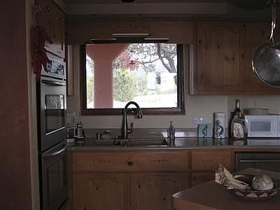 Beautiful custom built home (2007) on elevated site with MAGNIFICENT MOUNTAIN RANGE & SUNSET VIEWS. Custom hand carved cabinets in kitchen, a stainless steel Frigidaire double oven, Jenn-Air 5 burner cook top and LG dishwasher. Custom crafted alder & oak doors, kiva fireplace, radiant heat, beams throughout, diamond plaster finish in living room, 4 skylights/4 ceiling fans & gorgeous travertine tile in both baths. Electricity runs to the horse stable and electric gate to access property.