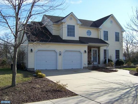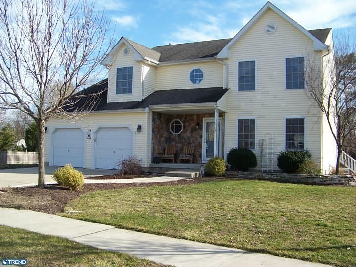 Well appointed and upgraded 2 story colonial in Delran’s Twin Oaks section. A cozy Cul De Sac location makes this 4 bedroom 2.5 bath professionally painted home, an opportunity not to miss. Step into the newer front door to hardwood flooring and a 2 story foyer. Check out the living room made into a play area with designer chalkboard. The formal dining room with large windows and hardwood flooring is great for evening meals. Always wanted that large eat-in kitchen? It’s here and offers solid surface counter tops with molded double sink, hanging center light fixture, hardwood flooring, and plenty of table space. Step down to a spacious family room with stone fireplace and wood mantle. Upstairs features 4 generous sized bedrooms and double sink bathrooms. Outside you can enjoy company on the 16 x 32 composite deck with vinyl railing overlooking the yard. Here too is a landscaped front yard to enjoy as you pull into the 2 car garage. A great location to major roads and close to shopping. See this one for sure.