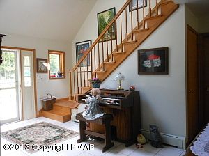 Welcome Home to this Amazing Contemporary Cape-Cod Home with Many Upgrades including 2 Car Garage, Koi Pond, 2 Acres of Property & Full Apartment Downstairs! Tiled Entry Way, Cathedral Ceilings & Hardwood Floors in the Living Room plus Brick Hearth with Flu for Woodstove. Formal Dining Room w/Hardwood Floor and Eat-In Kitchen with Granite Counters, Tiled Flooring & Backsplash & Slider to Back Deck Area that has Built In Benches for Entertaining or Just Relaxing. 1st Floor Master Suite w/Oversize