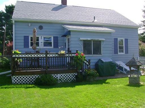 On dead end street across from the High School sits this pretty 4 bedroom cape. Hardwood floors throughout. Pellet stove remains. Roof is 5 years old, furnace is 8 years old APO. Rear deck overlooks fenced backyard with goldfish pond and barbeque pit. 1 car detached garage with door opener.