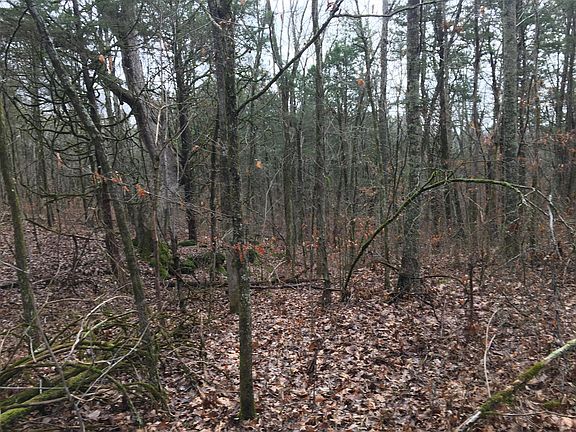 Wooded hunting/ recreational land surrounded by hundreds of acres of fields and timber. Very diverse and interesting 40 acre property. Approximately 900 ft of road frontage.
