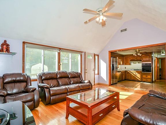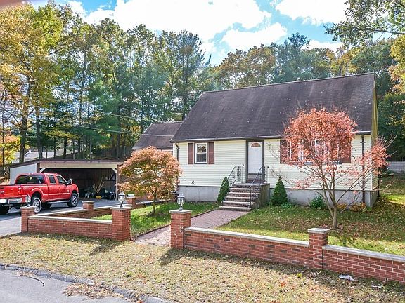 New price for this fantastic oversized Cape on a cul de sac in an AMAZING commuter location with easy access to major highways. There are gleaming hardwood floors throughout the entire home. The open floor plan is sure to please and is great for entertaining. The family room features cathedral ceilings and opens up to the deck that overlooks the private half acre back yard. Finished basement for a playroom/mancave/home office. Bedrooms are all great size with good closet space and recessed lighting.Central air! 3 zone heat which is great for conserving energy costs. 2 bay car port. An added bonus is the concrete foundation in the rear all ready to go for future addition plans!