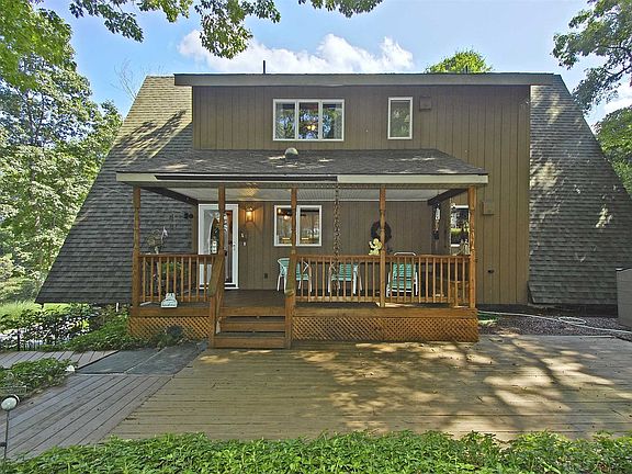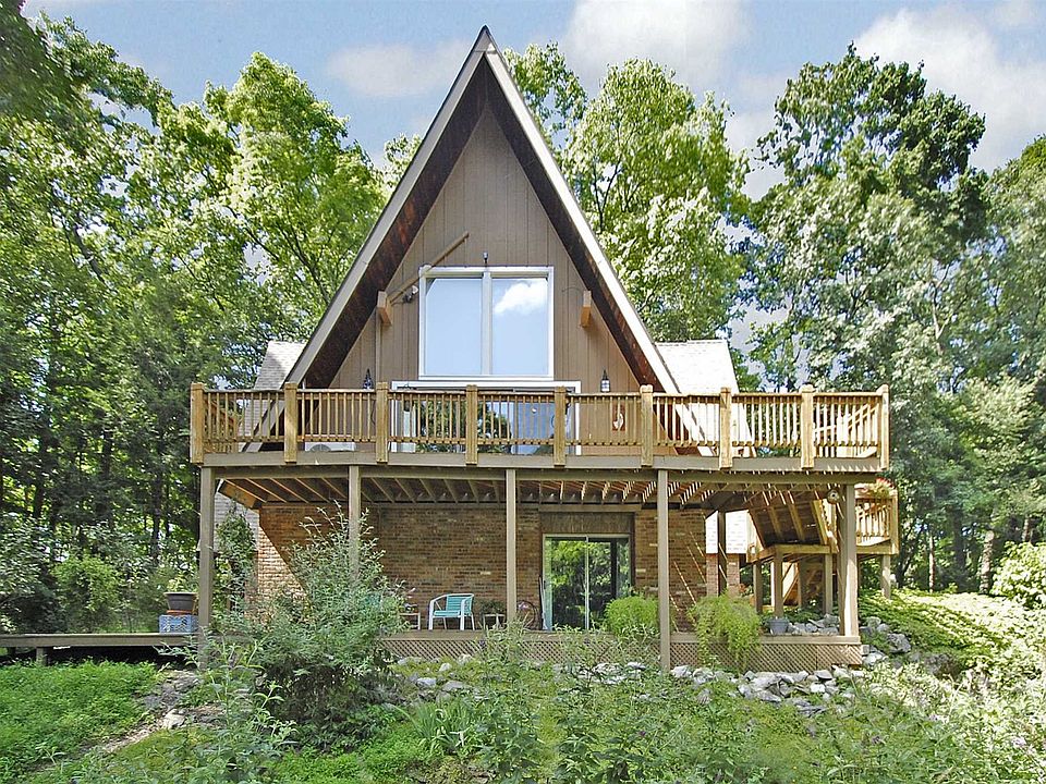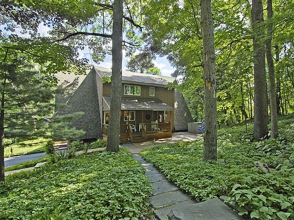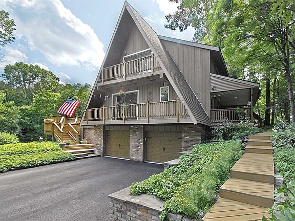 Multiple offers.. Highest and best due by the end of the day 9/2 - Lavish and lush grounds make it literally like being in the tree tops. Rustic chalet with dramatically high, A-frame ceilings. 3 levels of sunlit rooms and cozy corners, including a wood burning fireplace in the living room to snuggle by. To stay cool during the summer there is a Ductless AC Unit in the main living area. 4 bedrooms and 2 full baths w/ a glamorously updated white on white kitchen, with barndoor connected laundry room. Multiple decks and wrap around porches, with sweeping sliders, make for lovely spaces to relax or entertain. Updates include a new Furnace and Water Heater, the roof is 4 years old, blacktop driveway within the last year, hardwood floors refinished within the last year. A 2 car attached garage and a large shed for storage. Call today to see this one of a kind home!