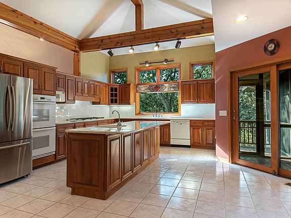 Impeccably maintained, this truly unique home sits perfectly on the tenth fairway of the prestigious General Golf Course, offering serene views and an exceptional living experience. As you approach, a custom-designed pergola entry sets the tone, leading you into a breathtaking foyer. The main level impresses with soaring beamed ceilings, a striking limestone fireplace, and an expansive use of windows that flood the space with natural light, creating a dramatic, open feel. The sunken living room, complete with a wet bar, flows seamlessly into the formal dining area, while the handrails subtly define the spaces. The gourmet eat-in kitchen is a chef’s dream, featuring cherry cabinetry, a double oven, a 6-burner gas cooktop, a large island, a pantry, and easy access to the screened porch, deck, and main-level laundry area. The luxurious primary suite on the main level includes an ensuite with a double vanity, custom-tiled shower, Whirlpool tub, and a spacious walk-in closet. The lower level offers additional living space, including two bedrooms, two full baths, and a family room with access to the lower patio. A spare room has the potential for an office, media room, or extra sleeping space. Additional highlights include oak flooring, tile in the kitchen and bathrooms, solid oak doors, two furnaces, two air conditioners, a paved driveway, and a large two-car garage. This home combines elegance, comfort, and thoughtful design in a stunning location—perfect for those seeking both luxury and tranquility.