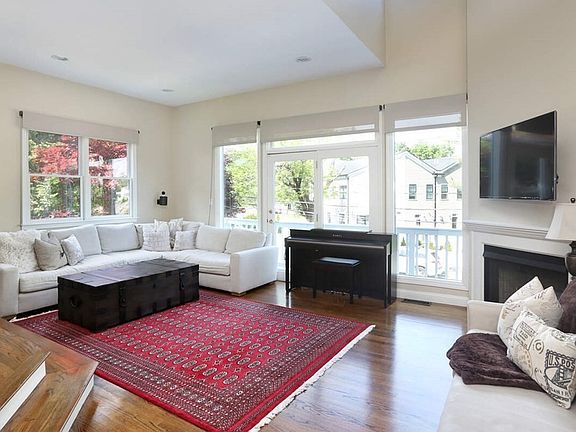 Ideally located between the West Newton and Waban villages, this stunning open concept townhome has been substantially updated and lives like a single-family home. The unit includes a direct entry 2-car garage, multiple Trex decks and a beautiful yard. The main living level opens into an expansive living room with a gas fireplace, cathedral ceiling and oversized windows that allow for an exceptional amount of light. Elevated by two steps are the great dining room, family room and kitchen area including a breakfast area with seamless access to a deck, ideal for barbequing or morning coffee. On the 2nd floor is the primary bedroom suite with cathedral ceiling, skylights, a walk-in closet, a private balcony and a beautiful en-suite bathroom. There are 2 additional generously sized bedrooms and a full bathroom on this level. The walkout lower level includes a mud room and a spacious room with large windows and an en-suite bathroom, ideally suited as a playroom, office or fourth bedroom.