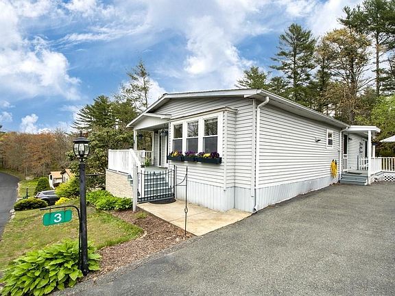 Welcome to Cranberry Village! Very desirable and affordable 55+ community. Lots to do if you want, enjoy the clubhouse and outdoor pavilion where you can join in different activities. This beautifully maintained double wide unit is a must see. The property is situated on a large private lot abutting the woods for lots of privacy.The living room is over sized as well with cathedral ceilings, a cozy fireplace and mantle. Step in to the kitchen with a center island, lots of counter space, and a three seat island to have your morning coffee or any meal you choose. There are two spacious bedrooms, the main bedroom has a walk in closet and a full bath. The second bedroom has a slider to the back deck overlooking the spacious back yard. TheThe washer and dryer are newer as is the refrigerator and both are staying, all you need to do is move in and enjoy this beautifully updated home. $100 refundable application fee due upon acceptance. No Showings prior to first Open House on Sunday 5/22
