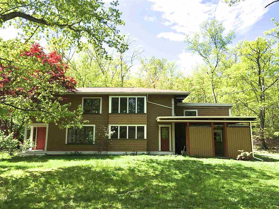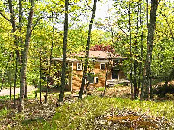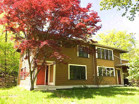 Modernized, cedar shingled, Arts & Crafts style at the end of Bluestone Road cul-de-sac on the market for the First Time! Come see all the custom interior details renovated in the last ten years. Hand milled clear ash floors and custom maple cabinets with tastefully thick slabs of local bluestone counters throughout the kitchen and breakfast bar. The stunning floating staircase, with masterfully hand-forged steel rungs and balustrades and maple stair-treads is the centerpiece to the open living plan with double height living area! The main house is a 3 bedroom home and has 3 full bathrooms with seasonal views of Overlook Mountain a short distance to the center of Woodstock and swimming holes on the Millstream. There is a large deck off the back of the house surrounded by a wooded area with rock outcroppings. The house is chimney ready for the addition of a cozy woodstove. Electric was upgraded in the last ten years to include wiring for an in house generator. The septic and leach field are approximately 7 years old. The roof was totally replaced and redone approximately 2 years ago. The is endless hotwater with a super storage tank. The upstairs master bath has an oversized valve for quick fill. This house is set up as a 1 family home with a well-appointed 3 bedroom, 1.5 bath attached apartment that could be used as a rental, an office or a studio. So much potential!