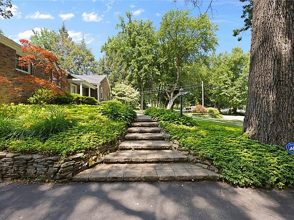 Spectacular ranch-style living in the coveted Sherwood neighborhood of lovely properties, mature trees, and winding streets perfect for strolling. The builder designed this unique 2-level home for his own family. You'll fall in love at your first glimpse from the spacious foyer into the bright living room with its gas fireplace and 7' bay window which views the lush backyard beyond. Next, step into the wide open dining room and the beautifully remodeled eat-in kitchen with bells & whistles and first-class amenities: white cabinetry with delightful custom features, granite, custom tile backsplash, Thermador 5-burner gas cooktop, Thermador double ovens, Bosch DW, premium GE Cafe refrigerator. Now, open the French door to a lovely year-round sunroom, which was recently rebuilt to perfection and leads to massive custom decks. The landscape offers privacy and beauty in every season, as well as spaces for imaginative play and adventures. 3 bdrms and 2 gorgeous recently-remodeled baths complete this 7-rm main level, one of which is the primary suite. There is an abundance of closets for linens and misc supplies. On the lower level, there is a big yet cozy family room with woodburning fireplace, wet bar, recessed lighting, built-in bookcases, and even MORE closets, plus a walk-in storage room. The 4th bdrm, also useful as a WFH office, in-law quarters, or guest room, is located here on this level, as well as a 3rd full bath. Fantastic oversize laundry room comes with Maytag washer & dryer and generous built-in cabinetry. Everything in this house speaks of professional quality and good taste, all up to date from paint, to hardwoods, to carpet & tile, to custom blinds. French doors, crown moldings add character. Host a crowd in this entertainer's dream floor plan. Move-in condition: just unpack & enjoy. Located close to shopping, expressway, village of Pittsford, restaurants. Greenlight internet. Generac generator. Updated electric service and HVAC. Leaf Filter gutter system. New garage doors. Trash collection included in taxes. Driveway repair in progress by Monroe County Water Authority. Delayed negotiations 12 noon Tuesday July 1.