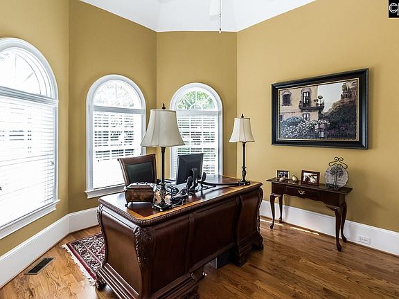 PARADISE! This STUNNING home is for the luxury-seeking buyer - walk into a feel you'll get nowhere else! Owner suite is 5-star hotel, custom-built box ceilings, attached, private living room that opens into immaculate, sculpted yard off of a back porch with the finest of touches. Owner bathroom has garden tub, separate shower, double vanity, recessed box for a television - perfect for spa night! Kitchen is a gourmet's DREAM - gorgeous, rich, stained cabinets with granite countertops, gas stovetop, all stainless steel appliances with separate wetbar holding wine cooler and beverage cooler. Island is huge and opens over eat-in area, second living room with recessed lights, uplights, built-in entertainment area, and a spectacular view over the gorgeous pool. Upstairs features an exercise room that could double as fifth bedroom, built-in office space at the top of the stairs, laundry chute down to the laundry room, and a FROG with beautiful built-in shelvings. ALL bedrooms have a walk in closet, and owner suite has TWO! 3 Car Garage is spacious with work area and plenty of storage. Central vacuum throughout. Gorgeous, custom molding throughout the home, and breathtaking hardwoods! Behind wrought iron fence in back is a spacious pool, private pond, firepit. Award-winning Richland 2 schools, close access to I-77 for Ft. Jackson, Columbia, Charlotte! Golf community, gated, private cul-de-sac is quiet and exclusive - Come see this piece of heaven and come home TODAY!