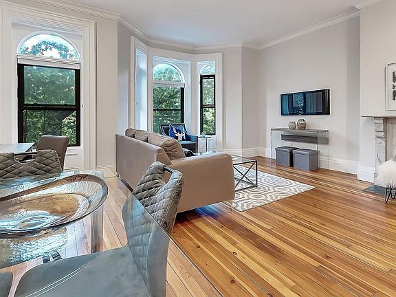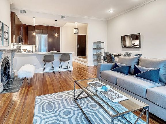 Sparkling two bedroom in the treetops overlooking Union Park. Elegant, open sweeping staircase with classic moulding and detail leads to wide open living/dining room with hardwood floors, fireplace and bay window. Open kitchen features stainless steel appliances, oversized cabinets and convenient breakfast bar. Two bedrooms including large master plus 2nd with door to lovely private deck with city views. A great home close to everything the South End has to offer!