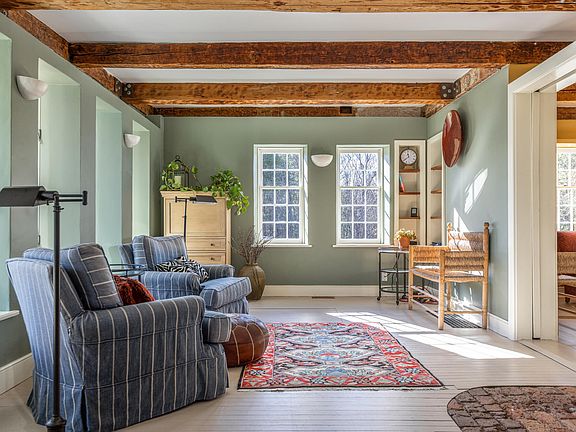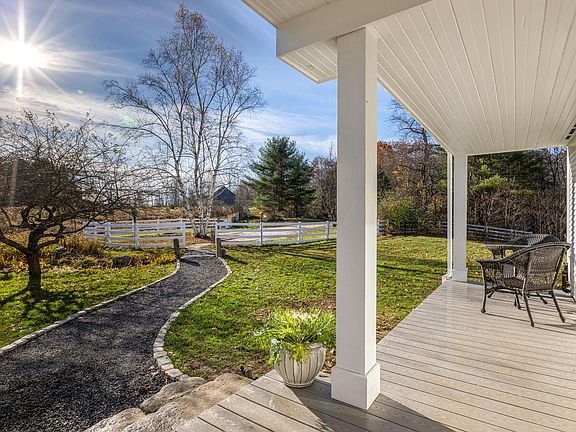 This beautiful, antique cape, rebuilt in 1993, has tremendous charm with the conveniences of modern amenities and updated systems. Walk up the stone walkway to the sunny farmer's porch into the spacious, open sitting room and kitchen with exposed beams and brick. The kitchen has abundant cabinet and counter space, a walk-in pantry and a wonderful dining area. The first floor also offers a bedroom with an adjacent room (perfect for a small office or walk-in closet) and newly renovated bath. A lovely living room with built-ins opens to the back of the house and the stairway to the upstairs. On the second floor is a primary bedroom with an adjacent room for closet space, and laundry. Also on the second floor is the open third bedroom and a full bath. With recent roof shingles, heat pumps, new hot water heater, fresh paint inside and out, and other updates, this home is move-in ready. The private 3+ acres include a custom patio with pergola, offering a gracious outdoor living space. This home provides a wonderful, quiet location conveniently just 30 minutes from Portland, 25 minutes to Auburn and 15 minutes to I95. Come see the special property!
