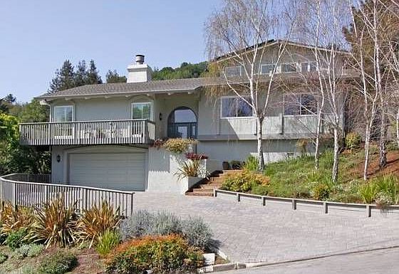 Custom view home with many "Green" features in the sunniest area of Mill Valley, 4 bedrooms, 3 baths, living room with fireplace, formal dining room, family room, walk out patio, yard and pool with direct access to open space, 2 central heating and air conditioning systems, solar panels, "Tuff shed" storage and 2 car garage.