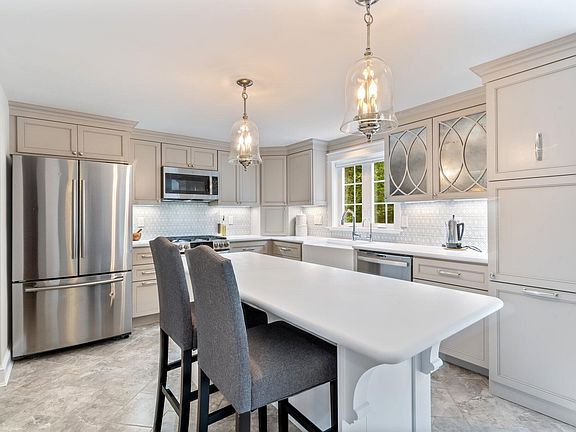Discover the charm and elegance of this meticulously maintained 3-bedroom, 2-bathroom Colonial home, thoughtfully remodeled to feel like new. The custom kitchen, bathed in natural light, features stainless steel appliances, an island, tiled backsplash, and under-cabinet lighting. It seamlessly flows into a spacious living room with a cozy propane fireplace. The dining room impresses with crown molding and exquisite details, while the first-floor laundry room and full bathroom, complete with a zero-clearance tiled shower, add convenience.