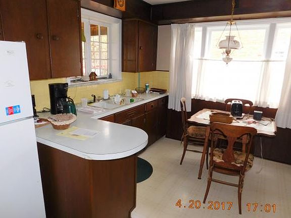 Nice West Side two story on cul-de-sac is walking distance to parks, schools, restaurants and shops. Spacious living room offers large picture windows and brick fireplace. Home has eat-in kitchen with stove and refrigerator, hardwood floors, and large bedrooms. Covered front entrance, two car detached garage, and covered patio that overlooks the landscaped yard and gardens.