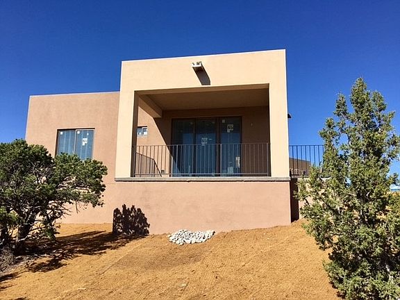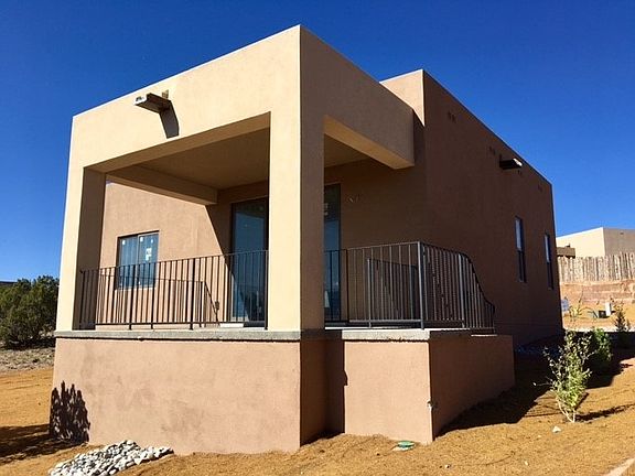 This gorgeous, two-bedroom, one and 3/4 bath home sits at the end of a small cul-de-sac in the peaceful neighborhood of Tessera. The view from the back portal is a lovely south-westerly orientation toward the Ortiz and Sandia mountains, the front portal has a spectacular view of the Sangre de Christo mountains. Stainless steel Whirlpool refrigerator, dishwasher, range, and microwave-hood are included, as are a Whirlpool washer and dryer. Plenty of counter space and an open kitchen make this home easy to cook in, and lots of green space outside behind the home create a peaceful atmosphere for relaxing outside and watching the sunsets. A convenient and energy efficient whole house fan help to cool things off during summer evenings. Nearly 6 miles of trails wind through Tessera, and nearby are the La Tierra Trails, and even more access to nature. Please come see this beautiful home for yourself!