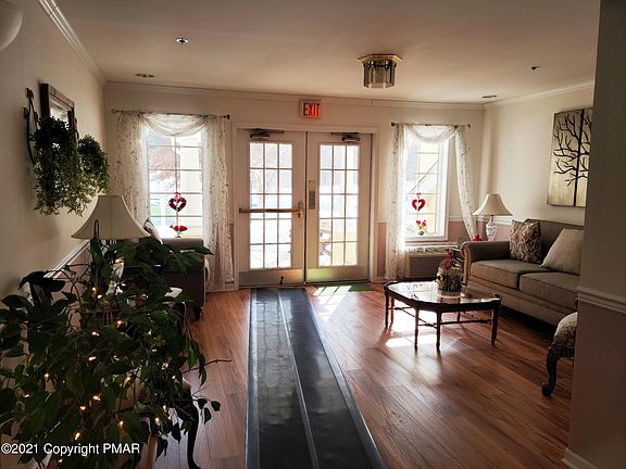 LaBar Village is a 55+ gated community that provides safe and easy-maintenance living for seniors who can live independently & enjoy engaging in social activities with other seniors. Spacious Living/Dining Room, Master Bedroom and Bath, Galley Kitchen, Bonus Sunroom. All appliances including security system and sprinklers in place. New Heating and Cooling System installed in 2012. HOA Fees include Water & Sewer, Snow Removal, Parking, Exercise Room, Library, Common Areas, Storage unit in Basement of the building. Shuttle Bus Service available. Stroudsburg Boro only minutes from the Delaware Water Gap at Route 80. Close to shopping, restaurants, casino and the Pocono/Lehigh Valley Hospital is five miles away. No pets allowed in the condo units. Units can be rented by the owner.