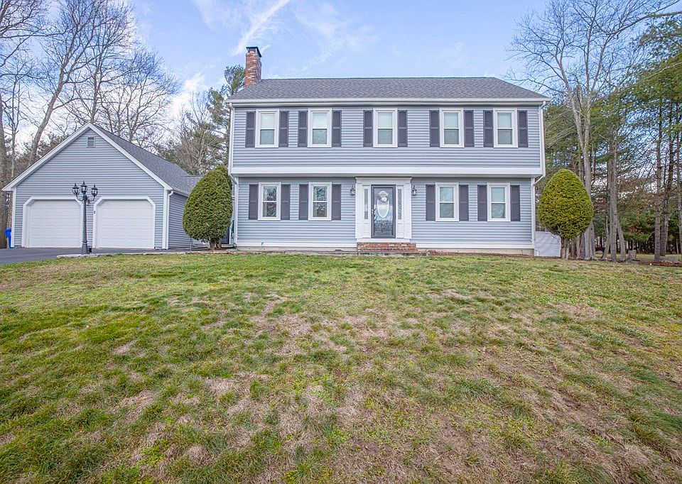 Stunning 4 bedroom, 2.5 bath home stately Colonial that is nestled on a serene setting in one of Taunton's most sought-after neighborhoods. From the moment you walk through the door you will fall in love with the open layout & spacious rooms throughout. The Kitchen sports granite counters & stainless-steel appliances with a large peninsula island that connects it to the eating area with sliding doors that open to the spacious deck. Outside you will find a huge level fenced in backyard with above ground swimming pool and shed. On the first floor you will also find a formal Dining Room & Living Room as well as the large Family Room which boasts hardwood floors and a beautiful brick Natural Gas fireplace. Upstairs you will find an expansive Master Suite with large closet and en-suite bathroom. There are 3 additional spacious bedrooms, full bathroom and laundry area on the second floor. Numerous updates throughout plus a huge Finished Basement with bonus room make this an exceptional buy.