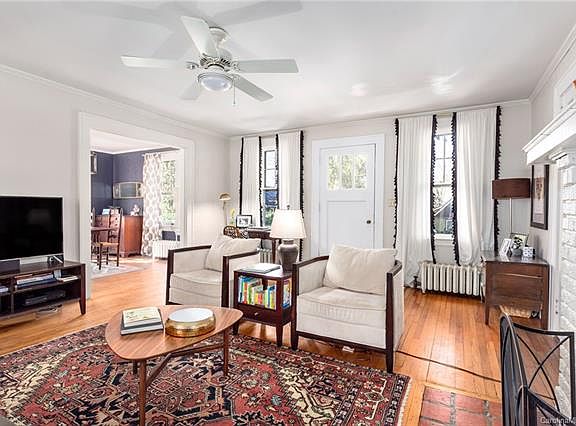 Idyllic Arts and Crafts colonial filled with natural light and nestled on quiet cul-de-sac in Grove Park! Come see this beautiful home and property, perfectly located near all of the conveniences of North Asheville. With an open floor plan, hardwood floors, and period details throughout, this home is perfect for entertaining. The large living room with brick surround fireplace connects to the sunny, formal dining room and extension with wraparound windows. Totally renovated custom kitchen with new cabinets, soapstone and marble counters, Schoolhouse Electric fixtures, and stainless steel appliances. Enjoy breakfast at the eat-in bar. Upstairs, find three large bedrooms and a full bath with subway tile and built-in storage. The back door leads from the kitchen to professionally landscaped and fully fenced yard with off-street parking and detached garage. Enjoy dining al fresco on the side patio. Move right in to enjoy the architectural beauty and all that Asheville has to offer!
