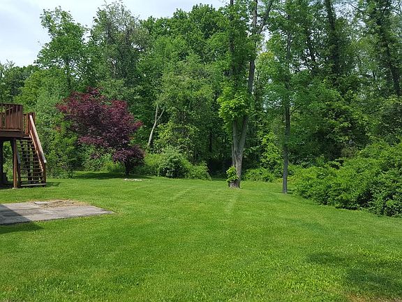 Fantastic opportunity to own a 4 Bedroom home on a Level and Beautiful 1.5 acres. Lovely cul de sac neighborhood convenient to everything! Spacious & Bright with over 2100 square feet and gas heat. New eat-in kitchen (2015) with stainless appliances, new cabinetry and vinyl flooring and sky light. Dining room, living room, all 4 bedrooms have hardwood flooring under carpet. Lower level offers family room, 5th bedroom, den, laundry room, full bath with walk out. New gutters/toppers (2013), New roof on barn (2010) and siding (2007). Full Bath, laminate flooring, carpet in lower level (2008). Vinyl siding, windows and doors (2004). Boiler (2002). Lots of room for parking. Beautiful and private level property with lots of room to play or garden! Barn 22' x 16'. Deck 21' x 14'