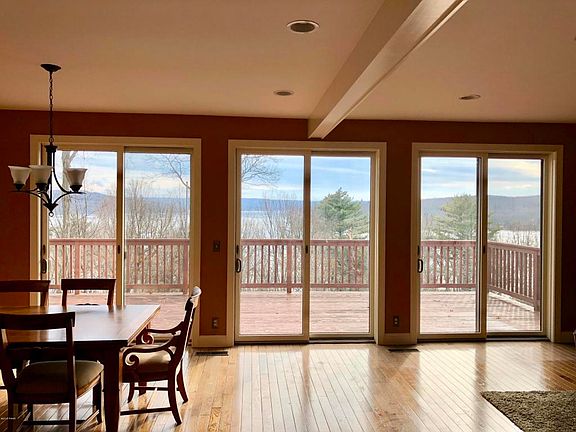 Custom Cedar Chalet with views of Lake Wallenpaupack. This exciting home is in excellent condition on a quiet street in prestigious Woodland Hills. this 4/4.5 has excellent quality throughout and features a screened in porch, stone fireplace, carport, finished lower level, central a/c and wrap around deck. Lease purchase is avalable.