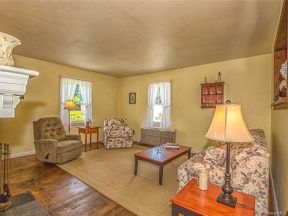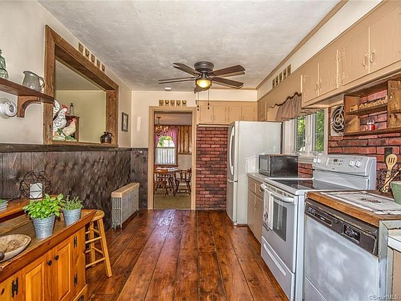 Beautiful 1221 sf cape located in the heart of Stafford. Kitchen has room for a breakfast table, freshly painted cabinets and refinished hardwood floor and open to the living room which is bright and sunny with a fireplace. The dining room is off the kitchen and has room for a large dining table or could be used as a den for additional living space. Two generously sized bedrooms, one with laundry hook up, and an updated full bath complete the first floor. The third bedroom is located on the second floor and had built in drawers and shelves. Third bedroom would also make a wonderful home office, den or playroom. The attic space on the second floor offers plenty of storage and could be finished to expand the bedrooms or living space. Newer windows throughout the home. The deck has been freshly painted and is ready for your summer BBQ's. The yard is level and clear offering plenty of room for outdoor activities. Located close to shopping and entertainment, just minutes to I84 and about 30 minutes to Hartford and 90 minutes to Boston makes for an easy commute. Schedule your private showing today