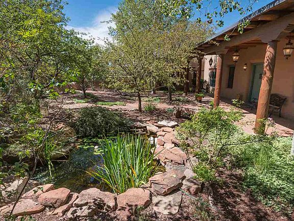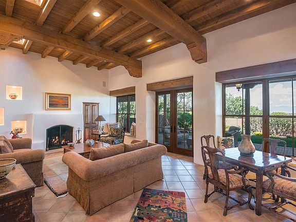Gracious, warm and comfortable are just three of the words that describe this lovely adobe home. Enter through a glorious courtyard with mature landscaping and a picturesque water feature. On the 6 fairway of the Las Campanas Sunrise golf course, this home commands magnificent views of the Jemez Mountains and vibrant New Mexico sunsets. One of the most memorable features of this home is the spacious, beautifully appointed kitchen which opens to the informal living and dining areas. In addition, the living room and dining room provide ample space for grand entertaining. The outdoor portals and gardens add abundant space for a true indoor/outdoor lifestyle. Two guest suites are in a wing of the home that's completely separate from the master suite. The master suite boasts its own sitting room, a luxurious bath, and truly exceptional closet space. An office and a library complete the picture. A membership to the Club at Las Campanas is available but not required.