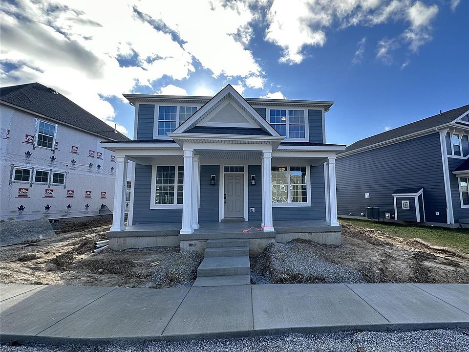 New Construction by Fischer Homes in Main Street Crossing, The Arlington offers an open floor plan that features a Great Room with a fireplace and a perfectly sized dining room. Open kitchen w/quartz, corner pantry, island w/seating space, & stainless-steel appliances all open to the morning room. 2nd story with 3 generously sized bedrooms, Primary bdrm with a spacious walk-in closet & private full bath and dual vanity sink. Two additional bedrooms share a central hall bath with a double sink vanity, basement, and two-car garage.