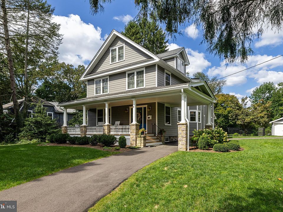 Completely renovated with a fresh, designer aesthetic using a top local builder and esteemed architect, a classic Colonial with covered front and back porches features new Hardie Board siding, new windows throughout, all-new electric, plumbing and HVAC. A spectacular three-story addition blends seamlessly with the original home, and the entire floor plan is detailed with top-end finishes. Nothing was untouched in the restoration process of the 5 bed room, 4 bath residence. A lushly landscaped, fenced backyard has an expansive paver patio and plenty of room for outdoor activities. The bright, airy three-level layout offers an elevator, two fireplaces, hardwood floors on the main level, generous storage space and neutral paint colors. Entertain in the gracious living and dining rooms, host movie nights in the fireside family room, or enjoy quiet pursuits in a den or the home office. A center island chef’s kitchen contains custom white Plato cabinets from Main Street Cabinet Co, quartzite counters, and stainless-steel appliances from Thermador and Miele. The primary suite is an owner’s retreat featuring a sun-splashed bedroom, room-sized closet and spa-inspired bath. Served by new water and sewer lines for additional peace of mind, this upgraded Colonial is a few blocks from a local elementary school and historic Moorestown’s shops and eateries.