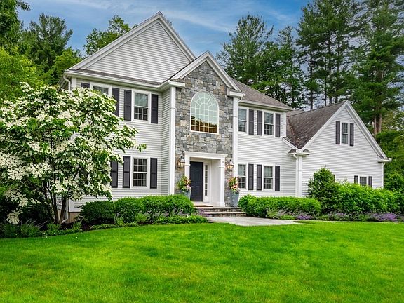 Impressive renovated young home at end of cul de sac where no detail spared. Heart of this home is the bright, open gourmet kitchen: granite countertops, huge island, Viking stove, GE Profile ss appliances, tiled backsplash & abundance of cabinets. Kitchen flows to fireplaced FR w/cathedral ceiling & custom bar- entertaining! Sliding door to deck. Living rm, Dining rm, office & 1/2 bath top off level. Exceptional architectural details: crown molding & custom millwork. Private exquisite Primary Suite boasts deep walk-in closet & spa-like bathroom w/jacuzzi tub & tiled shower. Also 3 comfortable bedrms w/spacious closets, full bath & laundry rm complete this floor. Walk-out LL has bonus family/game room, exercise area and full bath. Take a dip in hot tub or enjoy roasting marshmallows around fire pit. XL 2-car garage w/storage. Enjoy peaceful yard w/professional landscaping, designer lighting & masonry. OVER $250K in recent updates. Walk to elementary school. 3 min ride to Rte 93.
