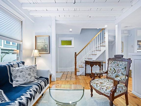 Beautifully Maintained & detailed 4 level, Single Family, Private Home on a quiet side street in sought after Charlestown. Beautifully updated with wide pine flooring and exposed beams. Antiquity complemented by thoughtful kitchen and bath upgrades. Glass doored, paneled white kitchen cabinetry plus an epicurean's choice Wolf Stove. Anderson French doors open to a sunny porch overlooking the private, fenced rear yard. Walk-out finished basement room, perfect for au pair or video entertainment center. 2nd floor has deep-soak, footed bathtub and pedestal sink, two bedrooms with closet and niche storage. 3rd level front to back, vaulted ceilinged room and bath used as Master Suite or Giant Wonderland Kids Playroom/loft with its exposed beams and stairway to a "Getaway" Roof Deck's sights and sounds of Holiday Fireworks. Side by side laundry. Walk to all Charlestown/Boston.