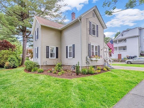 Welcome Home to this updated 8 Room colonial. This home offers 4-5 bedrooms or Home office. Updated kitchen with custom made cabinets. Full updated bathroom with granite counters, soft close cabinets and porcelain tiled shower surround. First floor main bedroom. Dining Room. Heated back porch/mud room. Updated plumbing. Updated electric. Circuit breakers. Newer forced air heating system. Newer gas water heater. Replacement windows. Vinyl siding. Gas Heat. All freshly painted. New Carpets and wood laminate flooring through out. Beautiful landscaped yard for relaxing and very convenient location. Truly Move in ready.