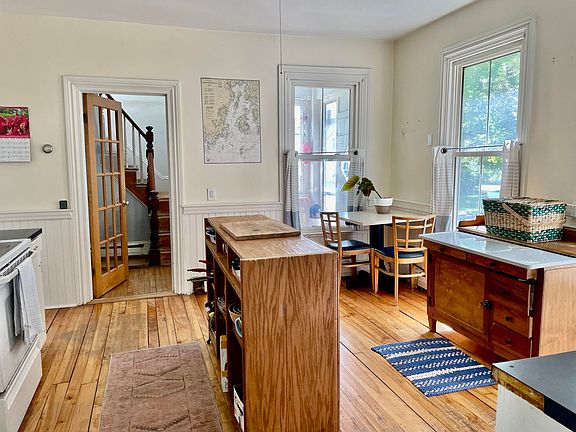 Classic Victorian-era home on downtown corner lot. This two bedroom/one bathroom home has many original details including gingerbread trim, hand-carved gable decoration, slate roof and hardwood floors throughout. The first floor features a entryway and laundry room, open kitchen with authentic cabinetry, combined living and dining room with ample sunlight and a cozy bay window with views of Carvers Harbor Pond. A three-turn staircase leads up to the second floor which has two bedrooms and a bathroom with a claw foot tub. From the second floor there is access to a third unfinished space with full ceiling height that could be renovated into more living space or another bedroom. Outside there is a large level lawn with a prominent historic maple tree, a sunny side deck with pond views and a workshop with electric. Endless potential for a new owner to put their own personal touches on this classic island home.