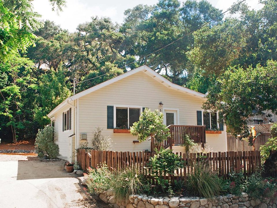 Drive through the verdant foothills of Carmel Valley and turn down the road leading to the meandering Carmel River. Set on the sunny side of the quiet neighborhood, you'll find a precious house surrounded by freshly planted, drought tolerant landscaping behind a tidy wooden fence. Walk through the artistic little gate, then enter the bright living room with soaring ceilings, which feels light and spacious. The two bedrooms are ample and inviting, the two bathrooms are sophisticated with new paint, counters, and updating. The kitchen enjoys fresh paint as well, and leads to the expansive level backyard opening onto a lush tree filled greenbelt. A surprisingly roomy cottage, perfect for indoor and outdoor living. The home was thoroughly remodeled in 2008, taken down to the studs with all plumbing and electrical replaced, Bamboo floors installed and other updates have been done since that time.