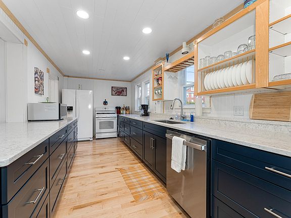 Live at the center of all things Bar Harbor in this move-in ready 3-bedroom, 2-bath residence, perfect for year-round living or a downtown retreat. Set on a quiet side street just steps from Main Street dining, shops, and the iconic Shore Path, this home blends thoughtful updates with effortless coastal Maine charm. A recently remodeled kitchen and new maple hardwood flooring create a welcoming main level, complemented by sun-filled spaces, and freshly finished ceilings for a bright, airy feel. The sunken living room, complete with a cozy gas fireplace and custom bookcase, offers a perfect spot to unwind after a day in Acadia or by the ocean. Enjoy the best of indoor-outdoor living on the expansive south-facing deck. Additional highlights include a second gas fireplace in the entry, convenient off-street parking from Center Street, and a large primary bedroom on the second level. A short walk to the end of Wayman Lane brings you to the ocean's edge with direct access to the Shore path and views of Bald Porcupine and Ironbound Islands. This property delivers the ideal combination of downtown convenience and modern comfort in one of Bar Harbor's most sought-after neighborhoods.