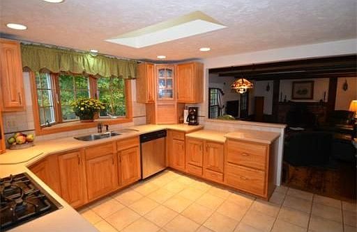 Sprawling lawns, tasteful landscaping and towering evergreens surround this warm and wonderful Reproduction Saltbox sited along a delightful cul-de-sac! Exposed beams, wide pine flooring, floor to ceiling bookcase and 3 brick fireplaces fill the home with country ambience. A new custom kitchen opens to a fireplaced family room with floor to ceiling bookcases and skylights. Additional features include a huge finished basement, updated bathrooms, walk-in closet in master bedroom with fireplace.