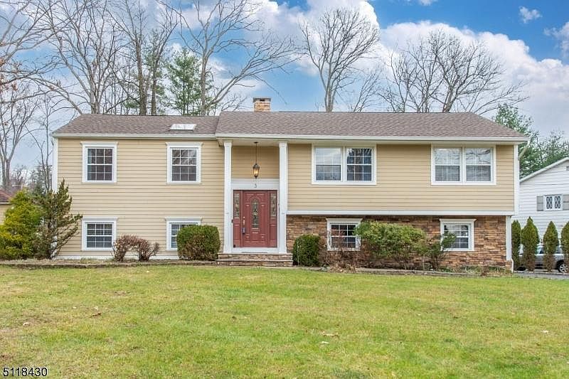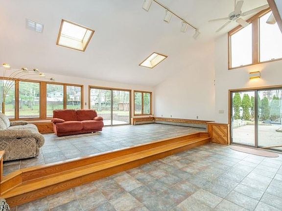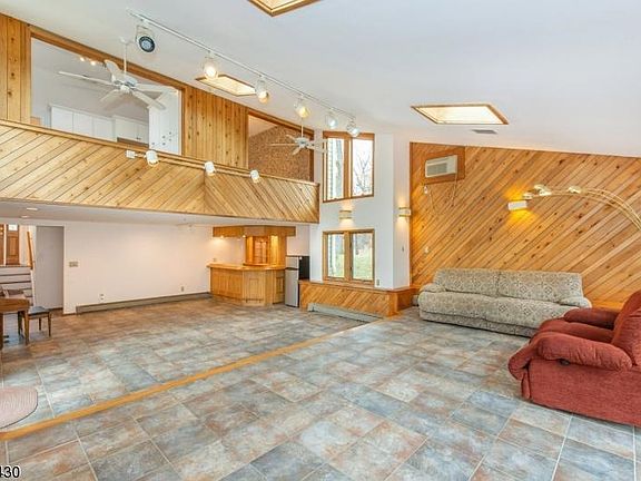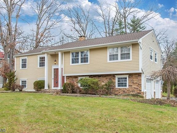 4 bedroom, 2.5 bath Bi-level house, over 3000 sqft living space and 2 car garage. The main level features central AC, 3 bedrooms & 2 full bath, a spacious formal living & dining room with vaulted ceiling & updated eat-in-kitchen. The dining room & kitchen overlook the spacious great room down below. Master bedroom has its own bath. The lower level features the 4th bedroom, half bath room and a spacious great room with a dry bar, cathedral ceiling, skylights and slider door that go out to a patio overlooking a park like setting. Easy access to highway while far away from the traffic noise. less than 5 minutes drive to the NYC train station. Renter is responsible for utility, water, snow removal and lawn maintenance Non smoking in the house Furniture not provided