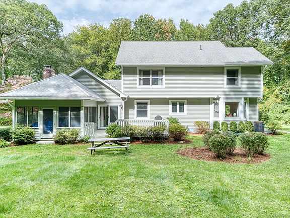 Think about living in a country oasis, off a small cul-de-sac street in the Heart of Columbia, CT. This is a custom built home that is not duplicated in our area. Follow the meandering driveway to your new home, nestled on OVER 5 acres of private space. Enter in to complete privacy, while still living in a neighborhood, and an area where exploring is mandatory. Just a short drive to private Columbia lake, where as a resident, you can enjoy the beach, fishing, or playing on the lake all day in your boat, jet ski, or kayak/canoe! Enter the home through the huge, wrap around covered porch. The first floor plan is spectacular (see in photo section). The family room/eat-in-kitchen combo is built for special times with friends and family. It also leads to the enclosed sun room and to the ground level deck overlooking your private rear yard. There is a separate dining room (also with french door to the porch), a living room, and half bath. The driveway entrance is amazing. You have your laundry there, but it also makes a great "mud room" area, and offers direct access to your oversized 2 car garage. Great for getting rid of those dirty clothes and shoes before you enter your home. The second floor has 3 large bedrooms and 2 full baths. And there is a walkup staircase to the 3rd floor offering another large finished room. The basement is full with a hatchway entrance and all home utilities. You can be in your new home for the upcoming holiday season, and start making memories!!
