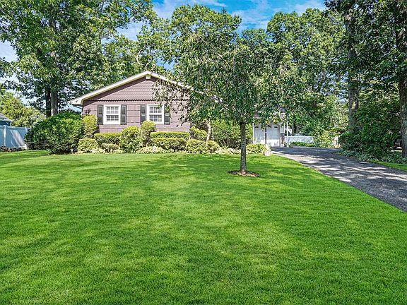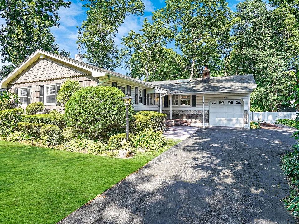 Gorgeous 3 Bedroom/2 Bath Storybook Ranch Located in Beautiful Nesconset with Famed Smithtown SD. Nestled in a Tranquil Double Cul-De-Sac Neighborhood, this Great Home has it All! Charming Front Brick Porch/Spacious Open Floor Plan/Vaulted Ceiling with Sun Drenched Skylight/Family Room with Wood Burning Fireplace with Hand Crafted Large Mantle/Beautiful Spacious Eat-in-Kitchen/Granite Countertops/SS Appliances/Breakfast or Wine Bar/Built-In Wine Cooler/Formal Dining Room with Custom Carpentry-Crown & Base Molding Throughout/Spacious Family Room/Primary Bedroom with Private Full Bathroom & Walk in Closet. 2 Additional Bedrooms/Large Full Bathroom/Hardwood Floors Throughout/Hunter Douglas Wood Blinds/Full Partially Finished Basement/Office/Utility-Laundry Room/Storage Galore/1 Attached Garage with Interior Access to Home/ Oversized Private Driveway/ Central Air/200 AMP Electric/.35 Acre Park Like Private Backyard. Entertainers Delight/Lower Taxes/True Pride of Homeownership, a Must See!