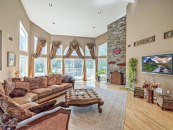 Stunning contemporary home with an open floor plan.Dramatic two story entrance that opens to a large two story family room. 5 Bd, 5.5 bathrooms and an office. Hardwood floors throughout. Guest suite with walk in closet and a full bathroom on the first floor. Gourmet kitchen with granite counter tops and top of the line SS appliances. Four bedrooms and 3 full bathrooms on the second floor. Family room is lit up through enormous windows overlooking a private fenced back yard. In ground pool with patio and lash greenery. Full finished walk-out basement offers a sauna, full bath, movie room and an entertainment area. All of this is in a cul-de-sac on one of the nicest streets in Marlboro. Desirable schools. Located near Rt.9 and Rt.18, shopping, restaurants and just short ride to Jersey Shore