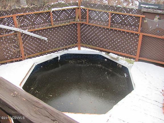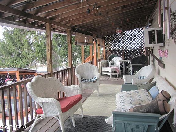 Affordable living-nice rear lot with lg. deck, fire pit, smokehouse, garage, and babbling brook. Newer metal roof, appliances included.
