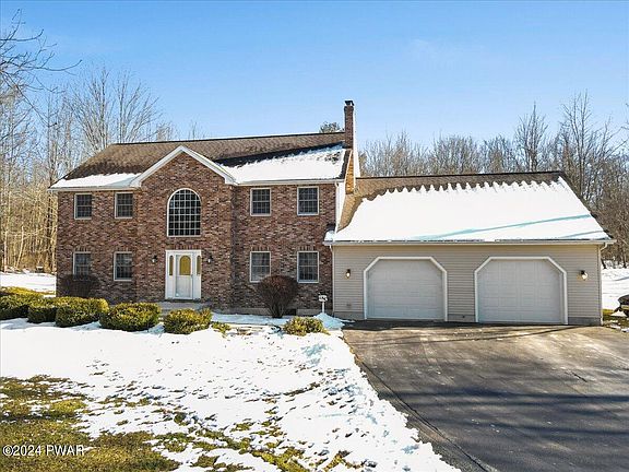 Welcome to your dream home in Cherry Ridge - an immaculate, custom brick colonial estate nestled on 8 acres of pristine country land just outside of Honesdale. This sprawling residence offers the perfect blend of luxury, comfort, and convenience. As you step into the grand cathedral foyer, the beauty of this home unfolds. The main level welcomes you with stunning Oak floors and an open floor plan that seamlessly connects the large kitchen, elegant dining room, spacious living room, and an inviting den/office - each space designed with meticulous attention to detail. Ideal for both entertaining and everyday living, this home exudes warmth and sophistication. Venture upstairs to discover the impressive primary bedroom suite, complete with a walk-in closet, and a full bath featuring a luxurious jacuzzi tub. An additional bedroom/oversized sitting room adjoins the primary room for added space and comfort. Three additional well-appointed bedrooms and a second full bath provide ample space for guests. The lower level offers a spacious family room, perfect for movie nights or gatherings, and a generous storage room, ensuring there's a place for everything. Outdoor living is a joy with a paved driveway leading to an attached oversized 2-car garage, featuring convenient ramp access to the lower level. Step onto the rear deck, where you can relax and take in the serene views of your private and wooded 8 acres. Located just a few miles from downtown Honesdale, this estate is strategically positioned for easy access to the Owego Turnpike, connecting you to Lake Wallenpauck and the Waymart/Scranton Area. The property has a peaceful country setting, offering a harmonious blend of lifestyle elements. Don't miss the opportunity to own this extraordinary property - a harmonious marriage of elegance, comfort, and natural beauty. Your exceptional home awaits you in Cherry Ridge!