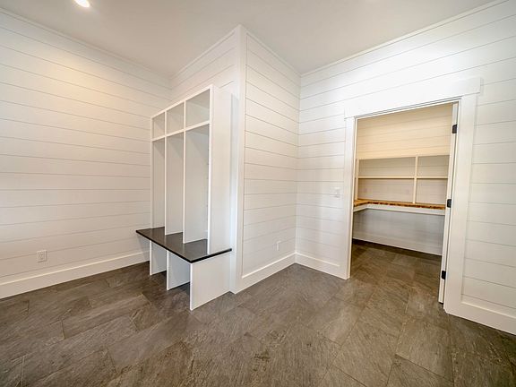sleek slate tile in the bathrooms and mudroom, every detail has been