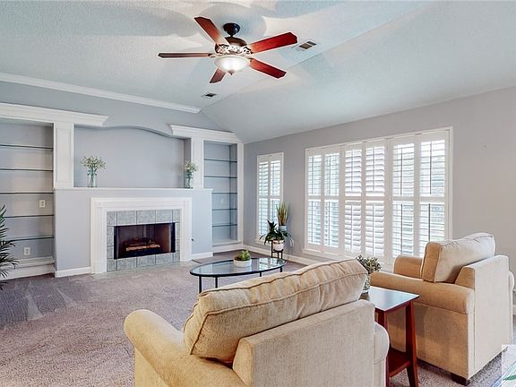 • Breakfast Area, Double Vanity, High Ceilings, Main Level Primary, Primary Suite, Pull Down Attic Stairs, Vaulted Ceiling(s), Fireplace, Programmable Thermostat