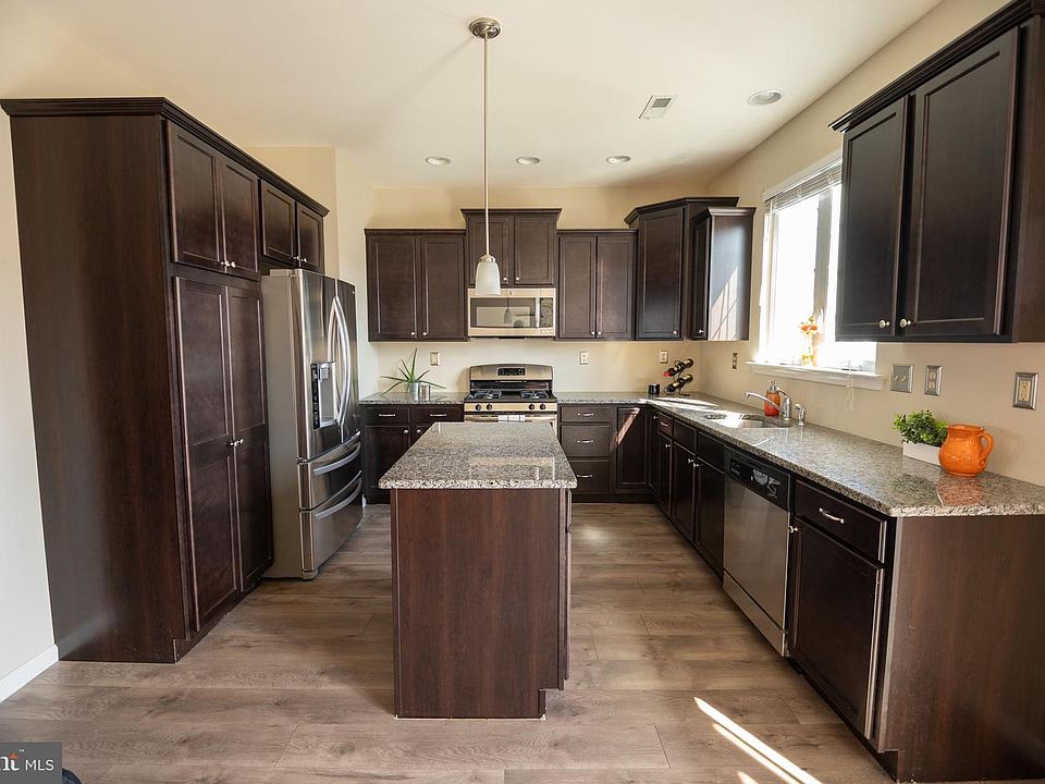 Welcome home to this beautifully maintained townhome in the outskirts of Telford! Pride and joy shows throughout the entire space which boasts several upgrades and attention to detail. Walk through the covered front entry where you are welcomed with hardwood flooring and a staircase to the main level. A top the steps is the open, inviting main living area. With 9ft ceilings throughout, a gorgeous chefs kitchen and eating area, formal dining and living room are all accented with brand new wide plank laminate flooring. There is a nice deck off the rear of this level as well as a half bath. The 2nd living level hosts a luxury master suite with vaulted ceiling in the bedroom and bathroom, double vanities and a large tile shower, and walk-in closet. Two other nice sized bedrooms, a full bathroom, and laundry room round out this level. The ground level has a fully finished den area with a sliding door to the back yard. There is also a 2 car garage with enough space to satisfy any needs. This move-in ready home is situated in a beautiful neighborhood with tree-lined streets, walking trails and play ground. Close to major routes, restaurants and shopping. Motivated seller with quick settlement possible - Schedule your showing today!