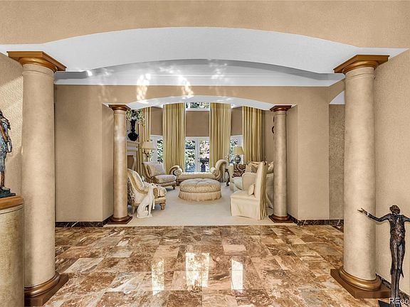 Amazing opportunity own a stunning home in the coveted Buell Mansion neighborhood! As you enter the front doors into the grand foyer you are immediately struck by soaring ceilings & impeccable details. The airy ceiling height is carried through to formal living room where you are embraced by an abundance of natural light & a grand fireplace. On the west wing of the 5,000+ square foot home you will find a main floor primary suite complete with two enormous walk-in closets & a luxurious 5 piece bath with large soaking tub- the perfect place to unwind at the end of a long day. As you meander down the hallway you will find a pristine formal dining room, large enough to host big family events or intimate dinners with friends. The gourmet kitchen offers state of the art appliances which include two dishwashers, two refrigerator drawers, walk in pantry, huge center island to name a few. This space is bound to be the heart of the home as it opens to a lavish family room with gorgeous built-ins overlooking the pristine backyard. The upper level offers three ensuite secondary bedrooms and a small craft or hobby room. The lower level greets you with an open-air theater room with European serving bar- entertain in style! A beauty/wellness salon completes this space- yes, you read that correctly. Your very own salon! So many lovely architectural details and finishes throughout! Awesome neighborhood amenities include the mansion, pool, tennis courts and guard gate. Restaurants, shopping, trails, parks all nearby! Cherry Creek Schools.