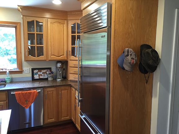 Just off 101 in quiet, safe neighborhood. This 4 bedroom, 2 bath house comes partially furnished. There is a 2 car garage, remodeled first floor bathroom, and remodeled kitchen. The large kitchen has high-end finishes, such as a Sub Zero fridge, Viking stove, quartz counter tops, and new hardwood floors. One bedroom is a well equipped gym (elliptical, recumbent bike, and treadmill) with wall mounted TV and massage chair. The Large mahogany deck in rear and covered porch in front overlook the partially fenced yard (for a dog) on just under an acre. Separate dining room, and living room with couches, reclining chairs, and a 65 inch 4K Sony TV, and cozy wood burning fireplace. Also includes Weber gas grill and enormous washer and dryer. 1 or 2 dogs negotiable, no cats, non-smokers only Tenant pays electric, snow removal, heating oil.
