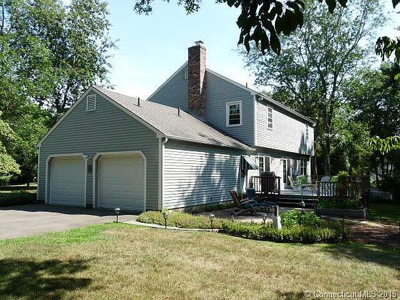 Meticulously maintained and delightfully updated, bright 4 bedroom Colonial home located in a desirable cul-de-sac neighborhood. The maturely landscaped 1 acre property is accented with a stone wall lined driveway, leading to a private fenced back yard. Enjoy the tranquility of the level shaded yard from the spacious deck or the Screened Gazebo both surrounded by lovely plantings. Inside, the remodeled Kitchen is highlighted with Vermont Soapstone counter tops, Hickory cabinets, Stainless appliances, a peninsula breakfast bar with sink, lovely tiled floors matching the tiled fireplace in the adjacent family room. Sliders lead to the deck & gazebo from both the kitchen & FR. Generously sized formal living and dining rooms with hardwood floors and crown molding finish off the 1st floor. Upstairs the spacious master features double closets and a remodeled master bath. The 3 other bedrooms are all good size with walk in closets. The upstairs is all hardwood floors. Additional amenities include central a/c, 200 amp electric w/backup generator attachment, walkout basement w/workshop area, spacious 2 car garage also has workshop bench. Walk to the adjacent Clark Community Park offering a great place to play, hike or fish